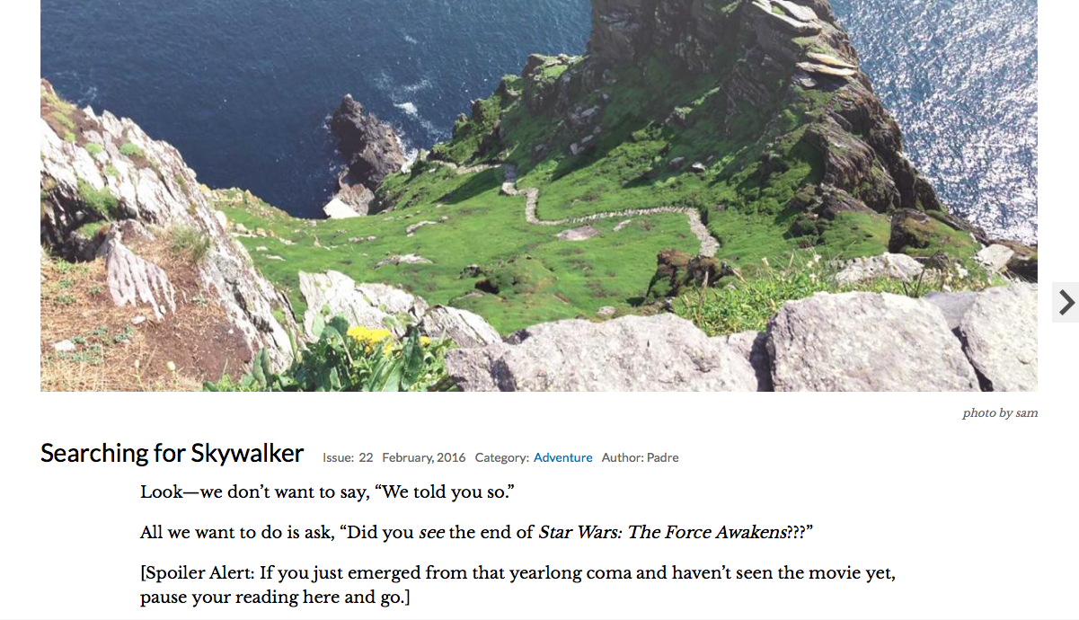 To explore this idea, I want to take you to a piece written by one of my favorite writers. He casts light not only on the insights gleamed from “Force Awakens” but he tells of the most epic of all ancient Christian monastic sites and the wild brave Christian Celtic men who occupied it.